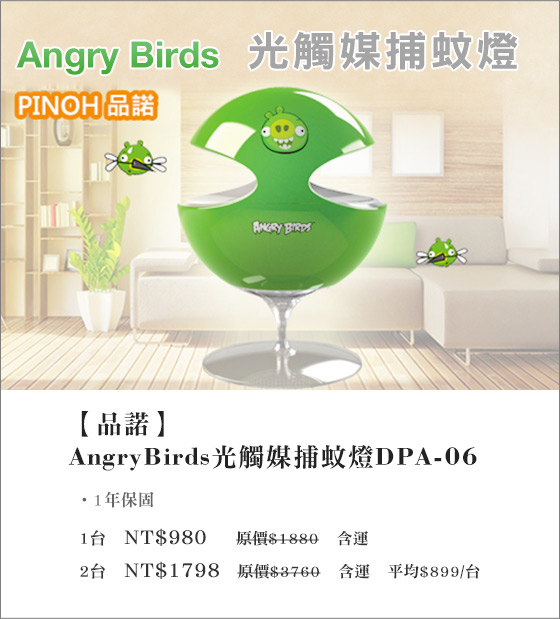 | 品諾-AngryBirds光觸媒捕蚊燈(DPA-06)-蚊子嗡嗡惱人打不著,光觸媒捕蚊燈一一擊殺,特殊冷陰極管提高誘蚊、網蓋設計增加撲殺率,終於可以好好入眠平均每台最低只要899元起(含運)即可購得【 售價:899 我要購買 |