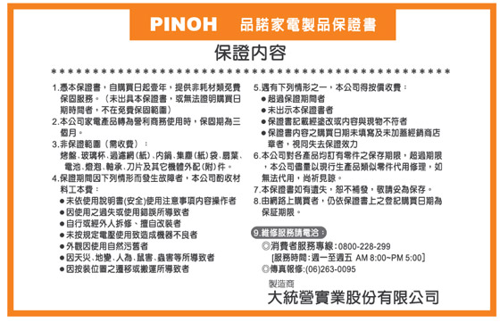 天氣漸熱,煩死人的蚊子大軍威脅再襲, 就用光觸媒捕蚊燈一一擊殺,讓居家環境回歸安寧。 ![]() 商品特色 ★特殊防逃網蓋設計,電源關閉仍不易飛出逃脫 ★高效直流節能馬達 壽命長、超省電、安靜又好眠 ★最高等級特殊冷陰極管,誘蚊效果更強 ★磁吸式集蚊杯,拆卸、清洗、組裝都方便 ★憤怒鳥圖樣活潑有趣,人見人愛 ![]() ![]() ![]() ![]() ![]() ![]() ![]() ![]() ![]() ![]() ![]() ![]() ![]() 商品說明 名稱:【品諾】AngryBirds光觸媒捕蚊燈DPA-06 品名:光觸媒捕蚊燈 額定電壓:110-240V 消耗功率:5W 產地:台灣 保固:一年 ![]() 注意事項:本產品嚴禁自行更換冷陰極管 |